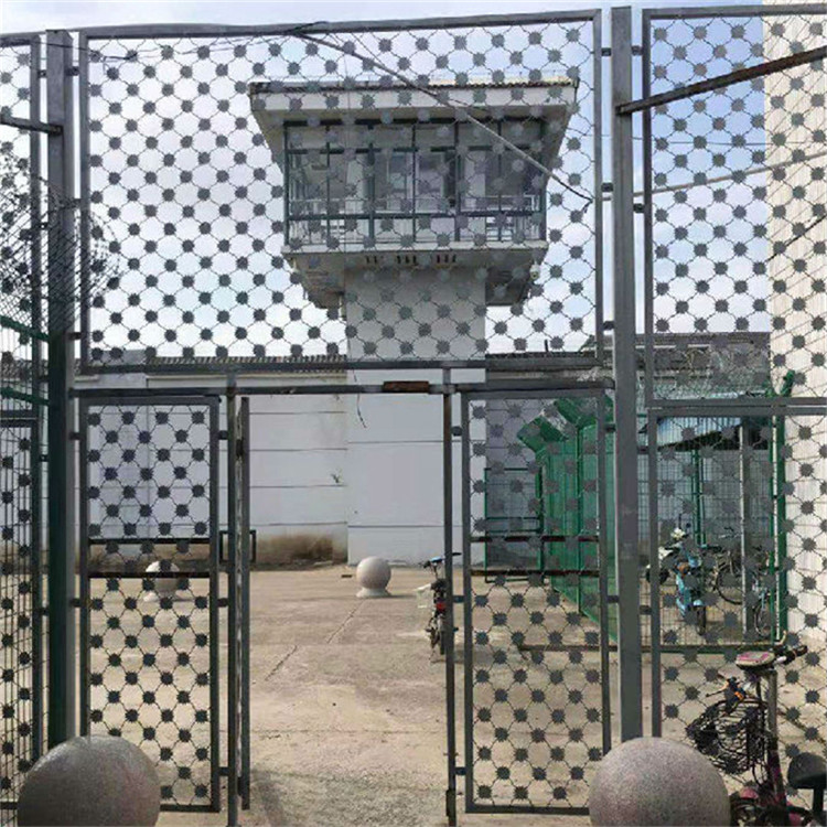 工程案例 監(jiān)獄隔離網(wǎng)組成結(jié)構(gòu):首先把網(wǎng)片焊接在鐵管框架上,框架是方管或者圓管焊接成的框架結(jié)構(gòu),在框架上焊接用于個(gè)立柱連接的連接板,用防盜螺栓與立柱連接。為了保證網(wǎng)片的防拆卸性能,網(wǎng)片連接方式采用特制防盜緊扣件,有效防止人為的破壞性拆卸