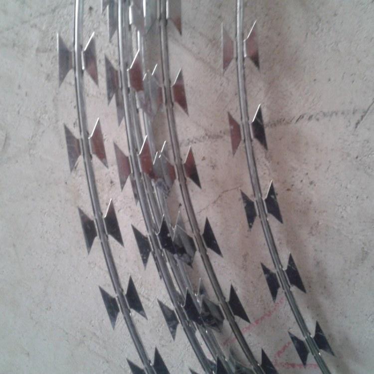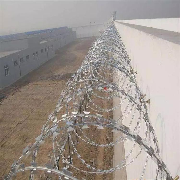 工程案例2012年最新《鐵路線(xiàn)路防護(hù)柵欄》[通線(xiàn)(2012)8001]通用參考圖出爐! 文獻(xiàn)規(guī)定:鐵路柵欄一改往日焊接鋼絲網(wǎng)柵欄、刺絲網(wǎng)柵欄等產(chǎn)品,改為防御性更強(qiáng)、壽命更長(zhǎng)久的:鋼筋混凝土柵欄+0.5米高刺絲滾籠的防護(hù)柵欄。詳細(xì)內(nèi)容如下: 鋼筋混凝土柵欄:詳見(jiàn)圖紙 0.5米高刺絲滾籠組成:刺絲刺繩+刀刺滾籠+鋼絲+立柱 圖集中:5、刺絲滾籠:(1)刺絲滾籠采用刀片刺繩繞圈后相鄰兩圈每隔120度用刺絲連接卡固定,張開(kāi)后形成蛇腹網(wǎng)狀,閉合后刀片刺繩卷徑為50cm,張開(kāi)后每交叉圈安裝間距20cm,直徑不小于45cm。(2)刀片刺繩由沖切鋼板采用機(jī)械軋?jiān)阡摻z上成型,刀刺寬度22mm,刀刃垂直間距15mm,刀刺縱向間距34mm,芯絲直徑為2.5mm。刀片厚度0.5mm的Q195鋼板網(wǎng)沖切制作。芯絲由HPB300 -6.5mm高線(xiàn)鋼絲冷拔加工。(3)刺絲滾籠由刺絲連接卡扣與固定在支架上的縱向拉筋相連接??v向拉筋與支架的連接采用-2.5mm的冷拔鍍鋅鋼絲繞2圈后擰緊固定。