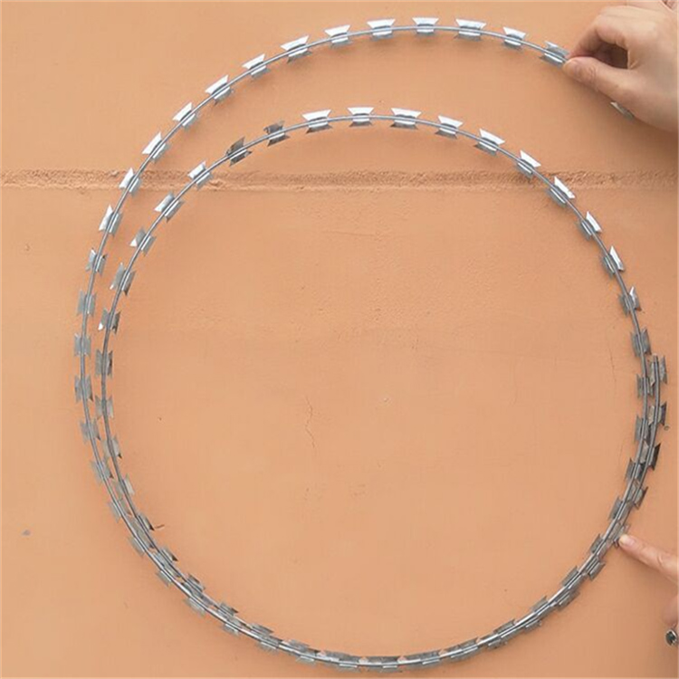 直線型刀片刺網(wǎng)有多種架設(shè)方式可供選擇。直線型刀片刺網(wǎng),施工迅速,在達到赫阻效果的同時,又節(jié)省經(jīng)費。
