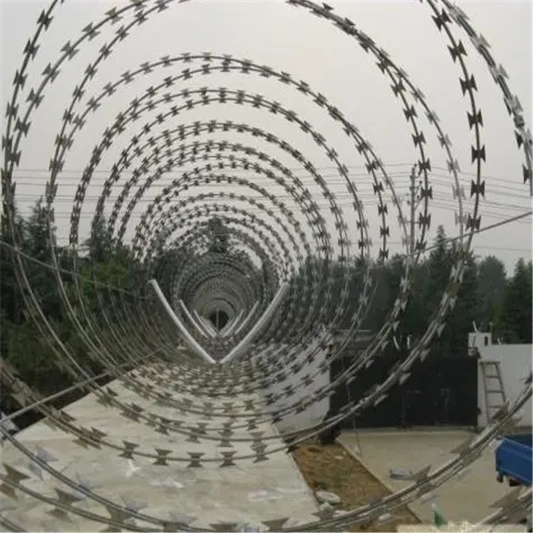 工程案例刀片刺繩的安裝方式主要有螺旋形和蛇腹形兩種。螺旋式和蛇腹式的不同之處: