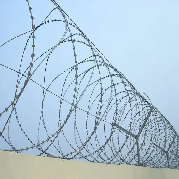 工程案例蛇腹型交叉刀片刺網(wǎng)是在兩條刀片刺網(wǎng)之間以不銹鋼片和鍍鋅鋼片強(qiáng)力夾扣,展開(kāi)后即呈交叉狀,美觀又實(shí)用。