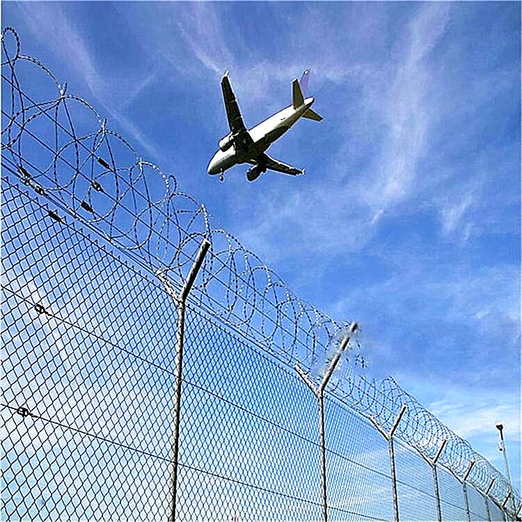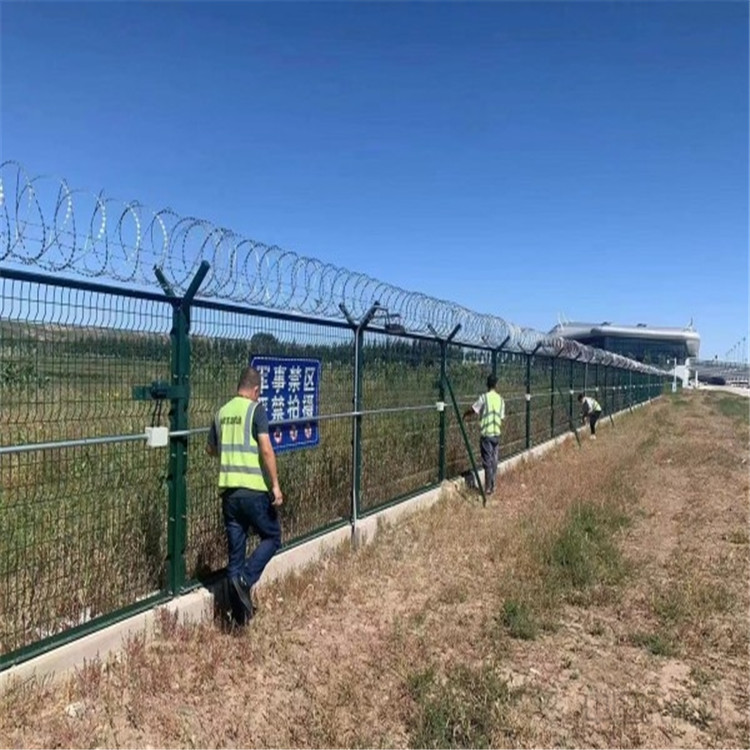 新聞動(dòng)態(tài)機(jī)場(chǎng)圍界從字義理解“圍”主要指圍護(hù)、隔離的意思,就是指的機(jī)場(chǎng)圍界的安全防護(hù)功能,它將機(jī)場(chǎng)防護(hù)隔離起來(lái)避免外界的攻擊與襲擾。“界”是范圍的意思,就是界定飛機(jī)場(chǎng)的范圍,因?yàn)轱w機(jī)場(chǎng)是特殊區(qū)域,具有特定的意義,不僅是地面領(lǐng)域還包括空域、電磁干擾區(qū)域等。是專為機(jī)場(chǎng)設(shè)計(jì)金屬隔離網(wǎng)產(chǎn)品,機(jī)場(chǎng)圍界作為機(jī)場(chǎng)防護(hù)網(wǎng)的統(tǒng)稱,采用高強(qiáng)度低碳鋼絲強(qiáng)力焊接,立柱為矩形鋼及高強(qiáng)度圓管,頂部加焊V型支架,大大增強(qiáng)了圍網(wǎng)的抗沖擊力,頂部在增加刀片刀刺絲后又很快的增強(qiáng)了安全防護(hù)性能。