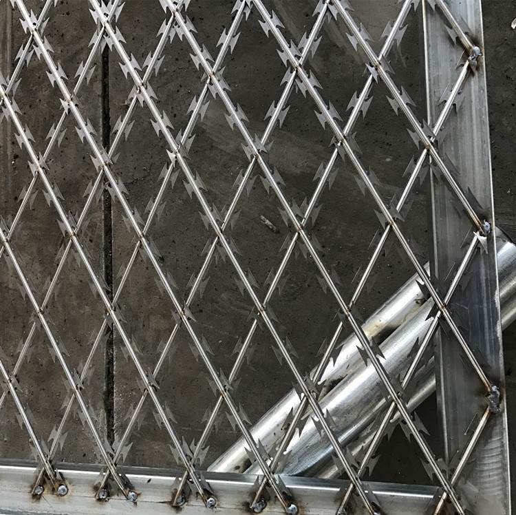 工程案例監(jiān)獄刀刺隔離網(wǎng)(刀刺焊接隔離網(wǎng))是一種全新的監(jiān)獄隔離網(wǎng)形式,監(jiān)獄刀刺隔離網(wǎng)又名刀片刺繩隔離網(wǎng)、刀刺隔離網(wǎng)。該產(chǎn)品具有嚇阻效果好.美觀.施工便利.經(jīng)濟(jì)實(shí)用等優(yōu)異特點(diǎn)。