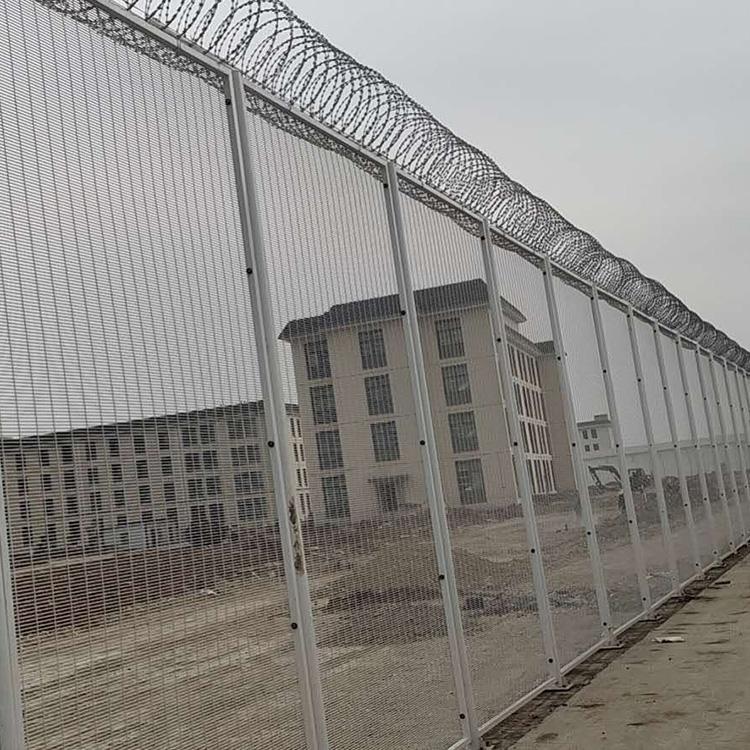蛇腹監(jiān)獄鋼網(wǎng)墻 監(jiān)獄外墻警戒隔離網(wǎng)網(wǎng)片主要采用不同規(guī)格的的金屬鐵絲經(jīng)焊接(編織)加工成網(wǎng)狀,主要絲徑有4mm,4.8mm,5mm,6mm。