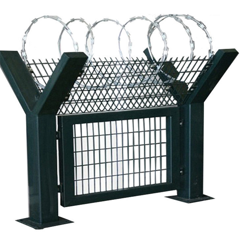 戒毒所、看守所、監(jiān)獄隔離網(wǎng)一般是由Y型立柱和加強(qiáng)型網(wǎng)片而組成,上面安裝50、60或者80公分的刀刺滾籠,安全防御級(jí)別很高,被廣泛應(yīng)用于戒毒所、看守所、監(jiān)獄、軍事基地等高安全場所。