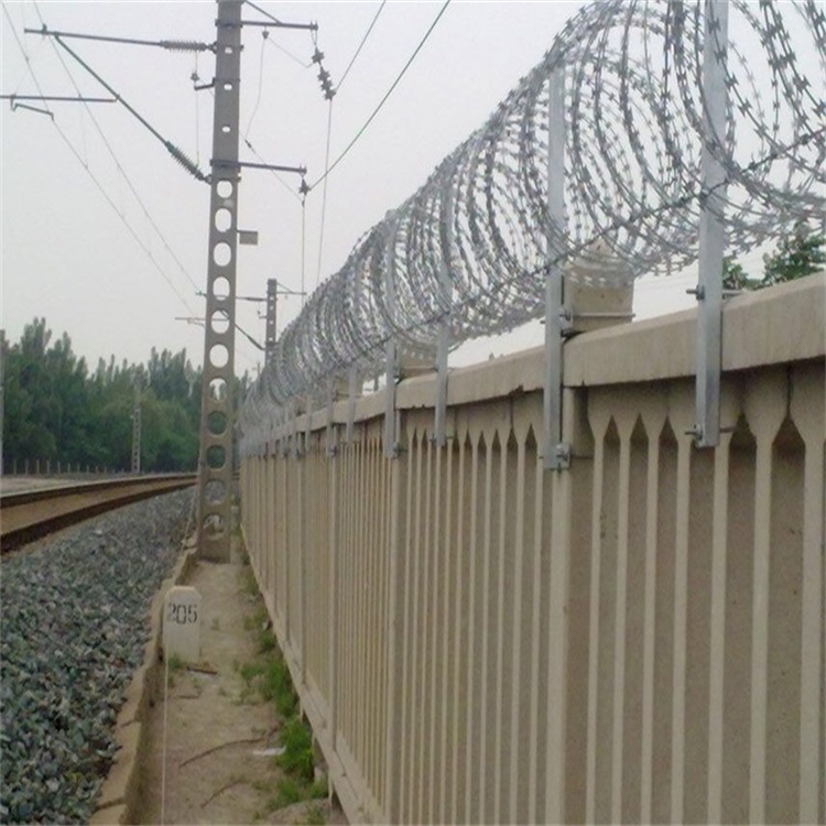 新聞動(dòng)態(tài)鐵路防護(hù)柵欄是為了保障鐵路安全而設(shè)置的一種防護(hù)設(shè)施。它的主要作用是防止人員和動(dòng)物誤入鐵路,避免發(fā)生意外事故。鐵路兩側(cè)上安裝刺絲滾籠不僅能保護(hù)列車(chē)行車(chē)安全,而且還起到保護(hù)沿線群眾人身安全的作用。鐵路防護(hù)柵欄如何配合刺絲滾籠使用?鐵路刺絲滾籠主要包括刀片剌網(wǎng),刺繩,和支架及卡扣等。配合立柱支架、加密支架、臺(tái)階支架安裝在水泥立柱上起到固定的作用,立柱一般間隔3米安裝一個(gè),中間加裝一個(gè)加密支架。