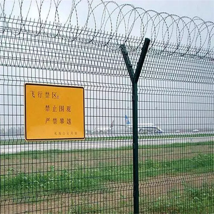 新聞動態(tài)Y型安全防御護(hù)網(wǎng)是由折彎網(wǎng)片,V型支架立柱,加強(qiáng)型焊接片網(wǎng),上面有刀片刺繩(又稱刀刺網(wǎng),刀片護(hù)網(wǎng))安全防盜連接件組成強(qiáng)度和安全防御性級別很高。因立柱外形酷似英文字母Y,所以被稱為Y型安全防御護(hù)網(wǎng)。頂部加裝刀片刺絲、刀片刺網(wǎng)后又很好的增強(qiáng)了安全防護(hù)性能。產(chǎn)品造型美觀、花色多樣,既起到圍欄作用,又起到美化作用。由于具有安全性高、防攀爬能力好,網(wǎng)片連接方式采用特制SBS緊扣件,有效防止人為的破壞性拆卸。被廣泛應(yīng)用在監(jiān)獄,機(jī)場,軍事基地等高安全場所。