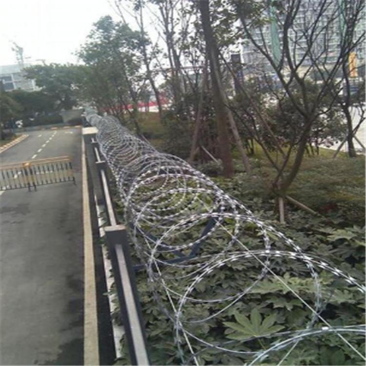 刺絲滾籠是鐵路建設、監(jiān)獄 、看守所、機場等場所常用的材料。價格不高,能有效防止跨越攀爬。相信在未來的市場中,高度戒備場所更加重視刺絲滾籠的使用。