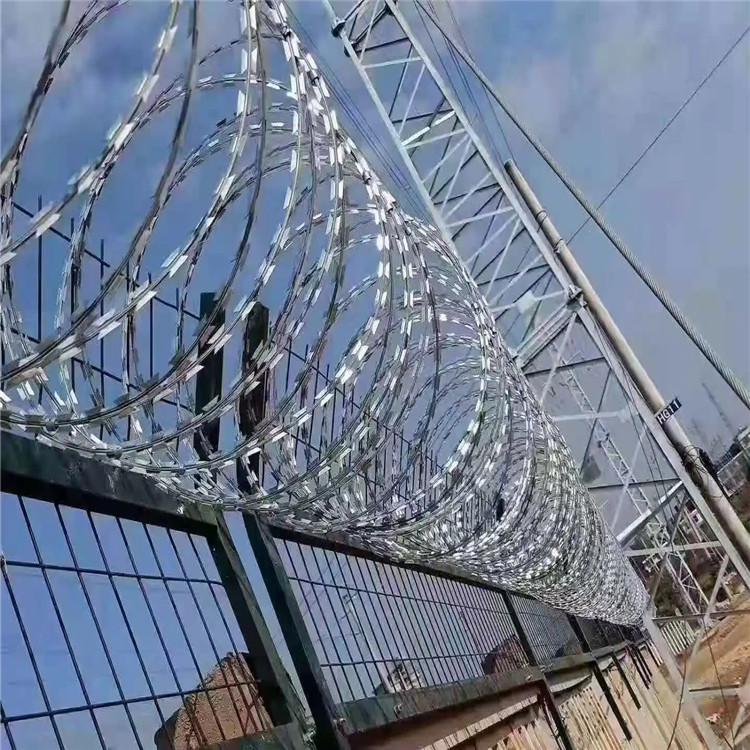 新聞動態(tài)近年來,監(jiān)獄用蛇腹型不銹鋼刀刺網(wǎng)被廣泛應用在監(jiān)獄,看守所,軍事基地等高安全場所。通常在Y型架上邊架蛇腹型不銹鋼刀刺網(wǎng):由不銹鋼薄板沖壓出尖利的刀片狀,高張力不銹鋼絲做芯線組合而成的阻盡器材。刀刺直徑采取50或60厘米,刀型整潔、刀片鋒利排列均勻致密、連接堅固、防腐才能強,可能達到防擎越、防拆卸更高保險等級。