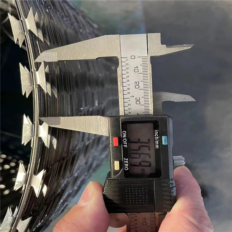 刀刺網(wǎng)外圈徑:500mm,600mm,800mm根據(jù)圈徑的不同,對應(yīng)每米的使用量也不相同,所以核算到每延米的價(jià)格也會有差別。材質(zhì):熱浸鋅和不銹鋼,型號:BTO-22,芯線:常用2.5mm,厚度:0.5mm,刀片長度:22mm*15mm,刀片間距:34mm以上就對鐵路刀刺網(wǎng)的介紹,如果是陰雨多的地方建議選擇不銹鋼刀刺網(wǎng)材質(zhì),其他地方熱浸鋅的就可以。達(dá)到標(biāo)準(zhǔn)上鋅量的刀刺網(wǎng)短時(shí)間內(nèi)是不容易生銹的,含鋅量不達(dá)標(biāo),這也是造成部分氣候潮濕地區(qū)的客戶反映生銹的原因,所以蛇腹型刀刺網(wǎng)需要定期更換。