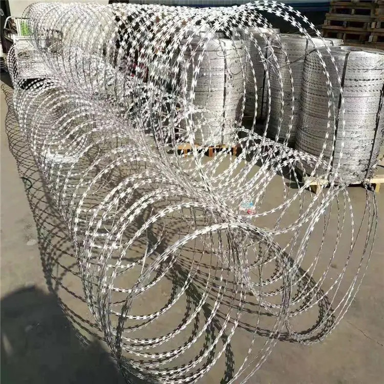 新聞動(dòng)態(tài)蛇腹式刀刺網(wǎng)( 也叫螺旋式刀刺網(wǎng)),我們簡稱刀刺網(wǎng)。常用材質(zhì):熱鍍鋅,不銹鋼304。目前我國的絕大部分監(jiān)獄已經(jīng)淘汰了熱鍍鋅刀刺網(wǎng),選用不銹鋼304材質(zhì),解除了兩年一銹一年一換的后顧之憂,高鐵上面用的刀片刺繩用的是直徑500毫米的,拉開間距為20公分,表面進(jìn)行熱鍍鋅處理,一般環(huán)境用120克上鋅量,特殊環(huán)境用鍍鋅量270g的。