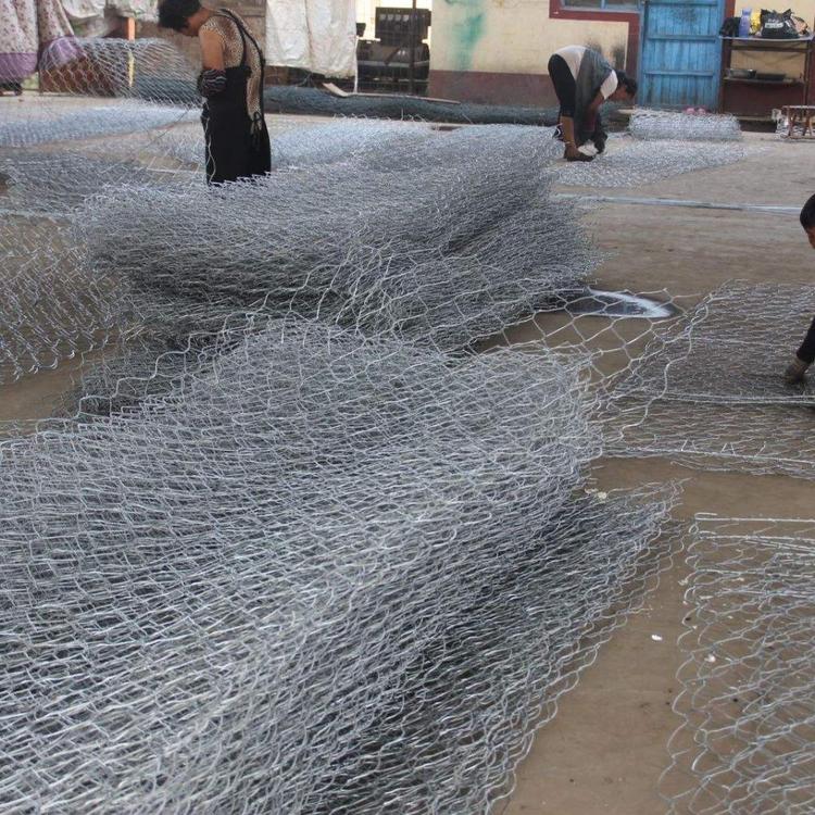 石籠網(wǎng)采用六角擰編而成過程為:原材料選取(盤條)——冷拔/鍍鋅/包塑——機器編織——人工剪切、組裝——產品檢驗——包裝運輸