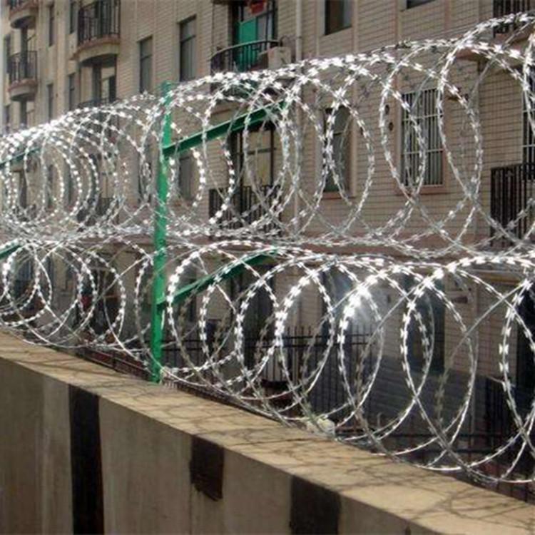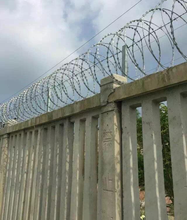 新聞動態(tài)2012年最新《鐵路線路防護柵欄》[通線(2012)8001]通用參考圖出爐! 文獻規(guī)定:鐵路柵欄一改往日焊接鋼絲網(wǎng)柵欄、刺絲網(wǎng)柵欄等產(chǎn)品,改為防御性更強、壽命更長久的:鋼筋混凝土柵欄+0.5米高刺絲滾籠的防護柵欄。詳細內(nèi)容如下: 鋼筋混凝土柵欄:詳見圖紙 0.5米高刺絲滾籠組成:刺絲刺繩+刀刺滾籠+鋼絲+立柱 圖集中:5、刺絲滾籠:(1)刺絲滾籠采用刀片刺繩繞圈后相鄰兩圈每隔120度用刺絲連接卡固定,張開后形成蛇腹網(wǎng)狀,閉合后刀片刺繩卷徑為50cm,張開后每交叉圈安裝間距20cm,直徑不小于45cm。(2)刀片刺繩由沖切鋼板采用機械軋在鋼絲上成型,刀刺寬度22mm,刀刃垂直間距15mm,刀刺縱向間距34mm,芯絲直徑為2.5mm。刀片厚度0.5mm的Q195鋼板網(wǎng)沖切制作。芯絲由HPB300 -6.5mm高線鋼絲冷拔加工。(3)刺絲滾籠由刺絲連接卡扣與固定在支架上的縱向拉筋相連接??v向拉筋與支架的連接采用-2.5mm的冷拔鍍鋅鋼絲繞2圈后擰緊固定。支架設(shè)置在跨度3m防護柵欄的立柱和跨中位置,其中跨度進設(shè)置與立柱上部,支架與防護柵欄采用支架抱箍連接,對于已經(jīng)安裝金屬網(wǎng)片的防護柵欄。刺絲滾籠直接采用-2.5mm的冷拔鍍鋅鋼絲或刺絲連接卡扣固定于金屬網(wǎng)橫片和金屬絲上。(4)刺絲滾籠的下緣距離鋼筋混凝土防護柵欄上緣的垂直距離為0.05m.6.陡坡地段防護柵欄下檻下部與地面間的間隙采用C25混凝土封閉,寬度180mm,與立柱兩倒平齊,埋入地面以下不小于0.3m.每單元于地面處留移100mm泄水孔。