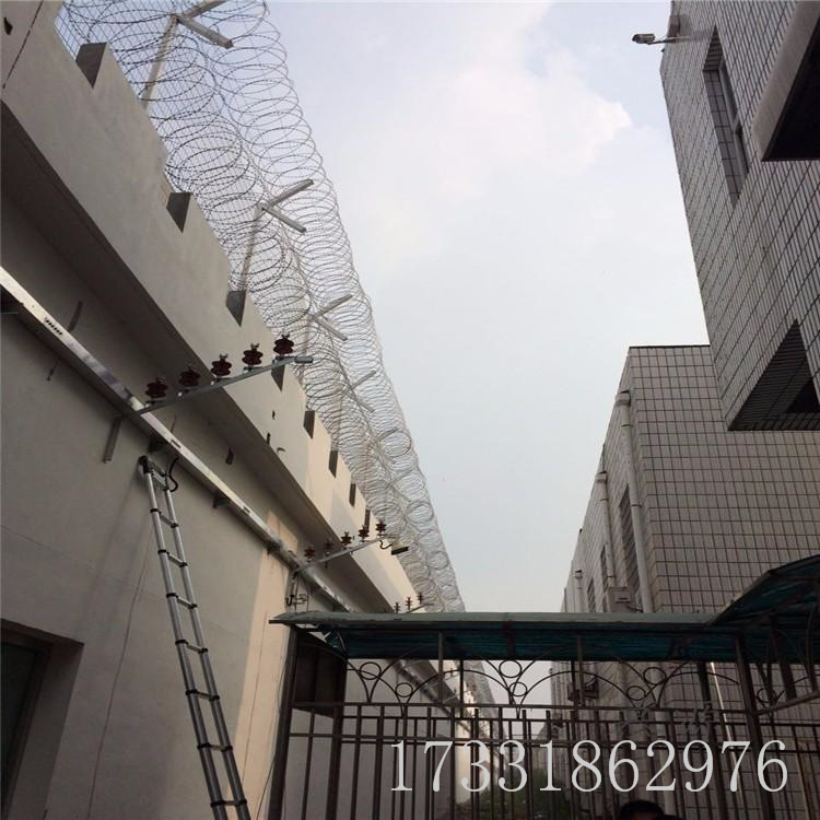 監(jiān)獄隔離網(wǎng)又叫鋼網(wǎng)墻 監(jiān)獄鐵絲網(wǎng)圍墻主要是采用高強(qiáng)度的刀片刺網(wǎng)與普通防護(hù)網(wǎng)的結(jié)合,由V型支架立拄,加強(qiáng)型焊接片網(wǎng),安全防盜連接件和刀片刺網(wǎng)組成.刀片刺網(wǎng)是一種新型防護(hù)網(wǎng),由銳利尖角鍍鋅鋼板或不銹鋼薄板做刀片,鋼絲做芯線組合而成的防護(hù)器材.