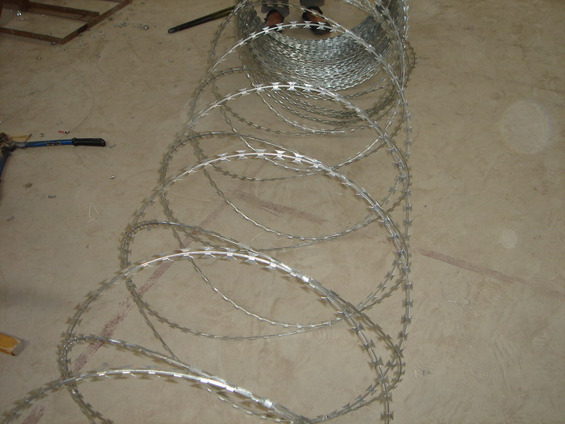 刀片刺網阻隔防護網是用直條的刀片刺繩直接焊接而成的網片,焊接成網片的刀片刺網擁有了小孔且不可攀爬的優(yōu)點,同時在防護高度上改善了傳統(tǒng)的螺旋形刀片刺繩,焊接成片刺網尺寸可高達2米,長度不限,現(xiàn)在大部分監(jiān)獄,看守所,派出所,機場,重要廠區(qū)等改進了原來的防護形式,越來越多的開始采用焊接式刀片刺網。