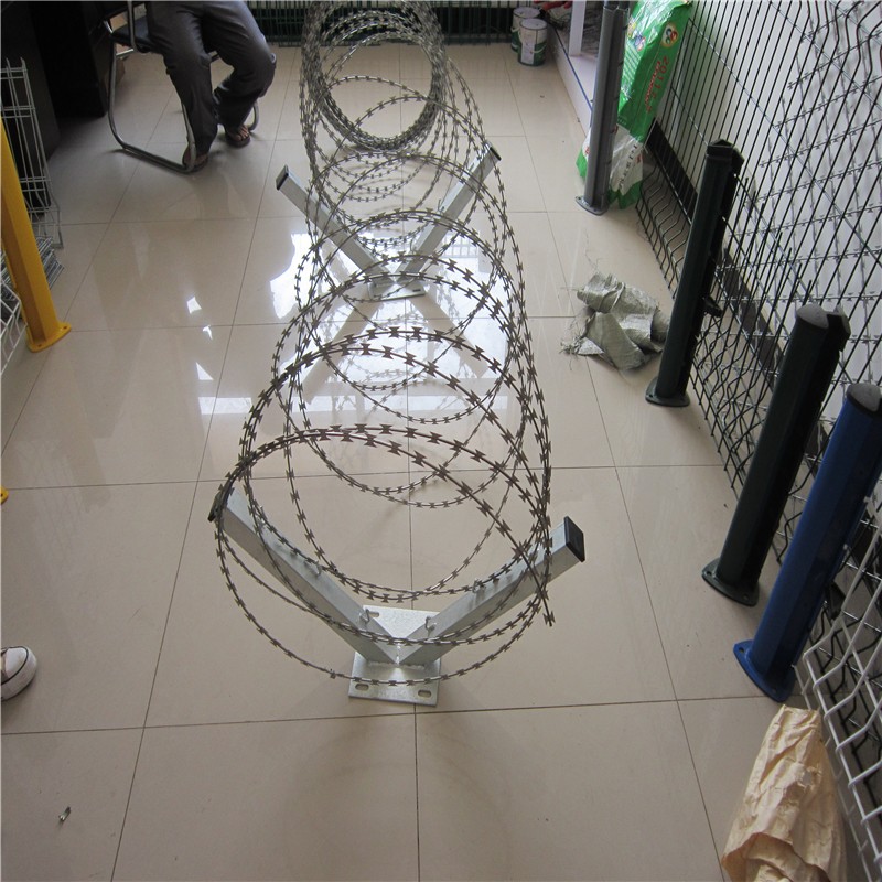 新聞動(dòng)態(tài)刀片刺繩圍欄也被稱作:刀片刺繩隔離網(wǎng)、刀片刺繩防護(hù)網(wǎng)、刀刺圍欄網(wǎng)、滾刺圍欄、刀刺隔離網(wǎng)、刀刺防護(hù)網(wǎng)等。是由熱鍍鋅鋼板或不銹鋼薄板沖壓出尖銳的刀片狀,高張力鍍鋅鋼絲或者不銹鋼絲做芯線組合而成的阻絕器材。由于它的造形獨(dú)特不易觸摸,因而能達(dá)到極好的防護(hù)隔離效果。