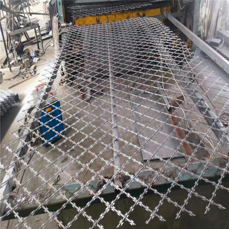 新聞動態(tài)監(jiān)獄焊接刀片鋼網(wǎng)墻是先把刀片刺繩成型之后裁成所需網(wǎng)片直條的長度經(jīng)網(wǎng)片機焊接成刀刺網(wǎng)片,孔型有長方形、正方形與菱形均可定做。材質(zhì):芯線優(yōu)熱鍍鋅鋼絲;板材為熱鍍高鋅或者不銹鋼板材。也可以表面噴塑或者涂塑,以達到更好的防腐耐酸堿的作用,延長使用年限。將不銹鋼拉絲固定在隔離網(wǎng)的頂部,形成一個v型托網(wǎng)用于架設蛇腹形刀刺網(wǎng),將刀刺網(wǎng)按照12cm的間距均勻鋪設在v型支架上,用不銹鋼防拆卸卡扣與v型托網(wǎng)上的不銹鋼拉絲固定。