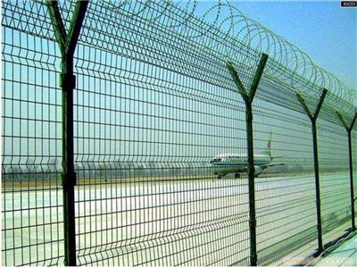 機場護欄網又稱作“V型/Y型安全防御護網”,是由V型/Y型支架立柱加強型焊接片網,安全防盜連接件和熱鍍鋅刀片