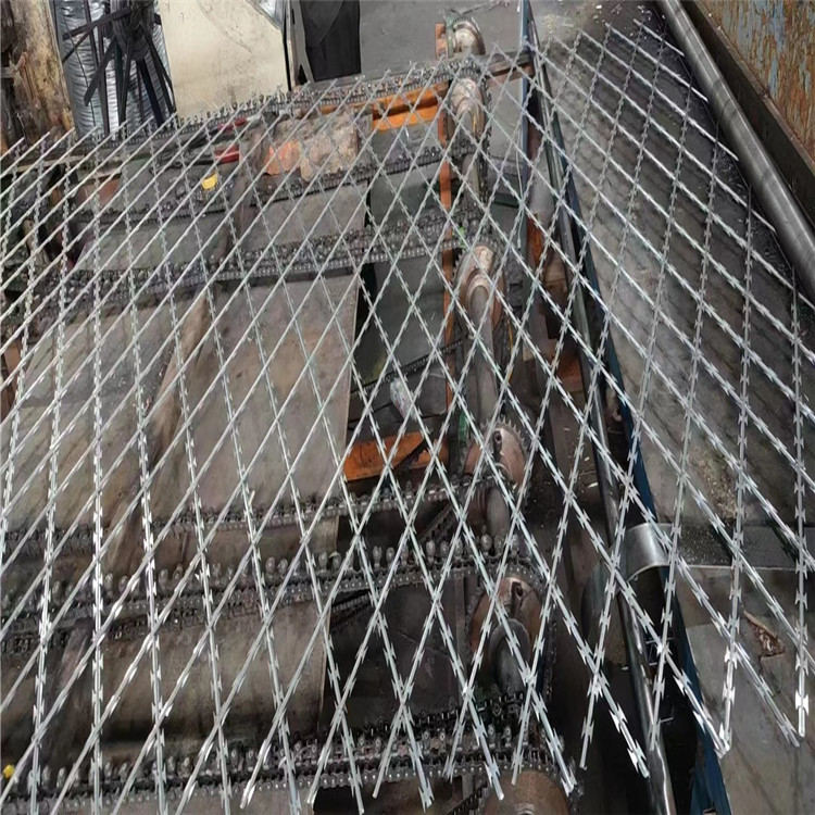 新聞動(dòng)態(tài)交叉式焊接刀片防爬網(wǎng)由刀片刺繩焊接而成的,具有防腐性能好,不易被破壞。一般焊接成菱形孔,提高了防攀爬能力,是安全性能很高的新型防護(hù)網(wǎng)。