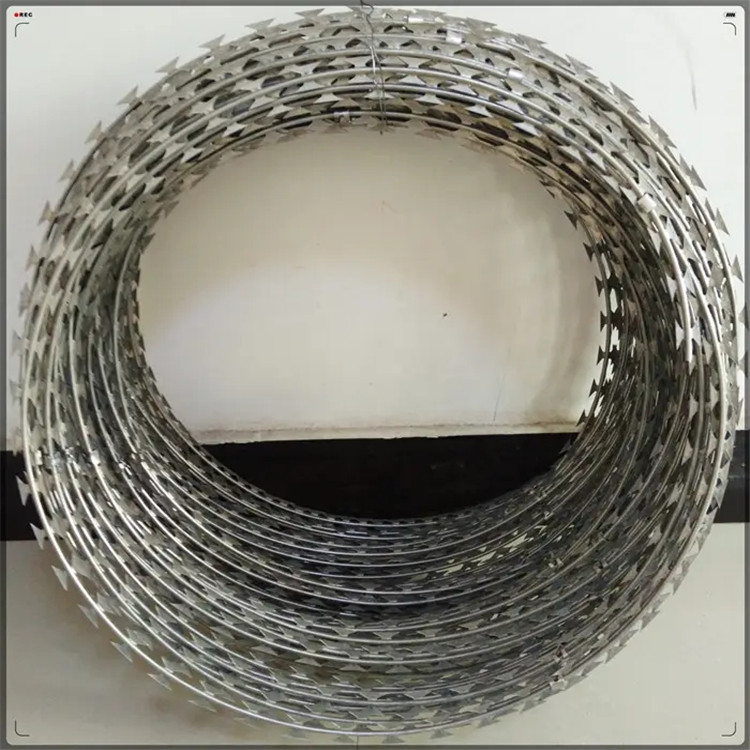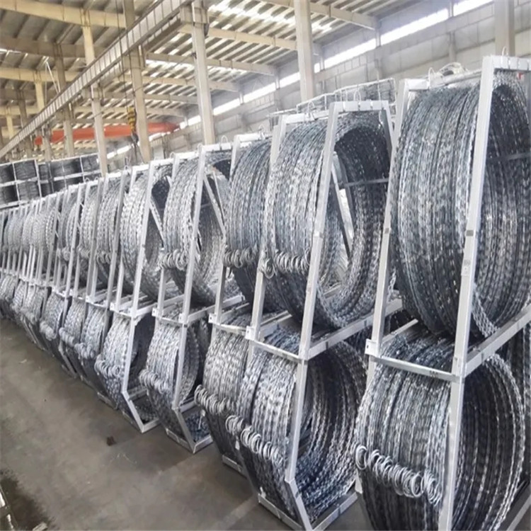 工程案例 刀刺隔離網(wǎng)片得收放: 刀刺隔離網(wǎng)每2圈有3-7個卡扣,而且是圈圈相卡,拉開以后形成螺旋狀,拉伸的時候注意一定要帶防護手套,避免劃傷。拉開的時候只需要固定刺網(wǎng)的一邊,然后向相反方向拉開就行,注意孔的間距不要太大,不然影響美觀效果。收的時候只要慢慢的送回去就行,操作簡單,施工便利。